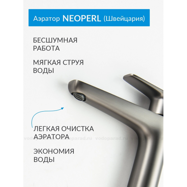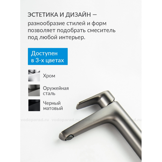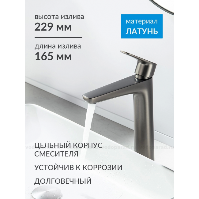 AQ1104BGM БЕТТА смеситель для раковины высокий 230, без донного клапана, оружейная сталь купить с доставкой. 100% Оригинал. Гарантия!