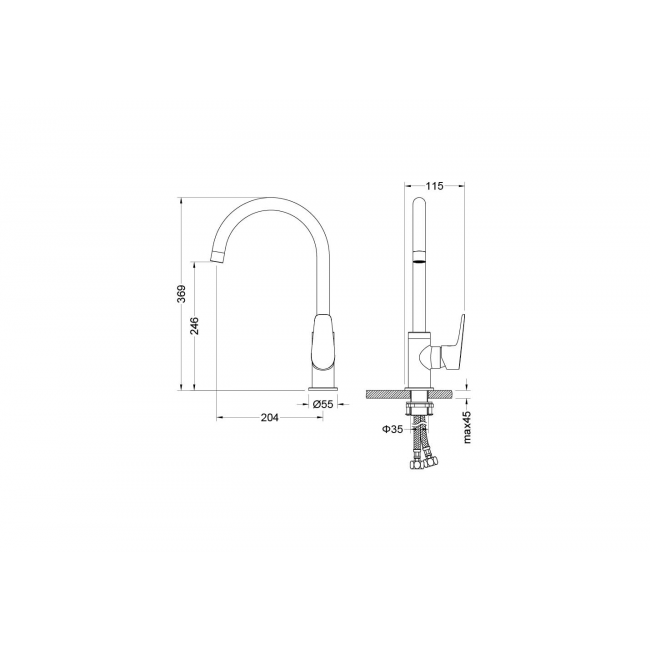| Комплектация | 1. Смеситель 2. Гибкая подводка 60см 3. Монтажный комплект 4. Слив-перелив и донный клапан в комплект не входят |