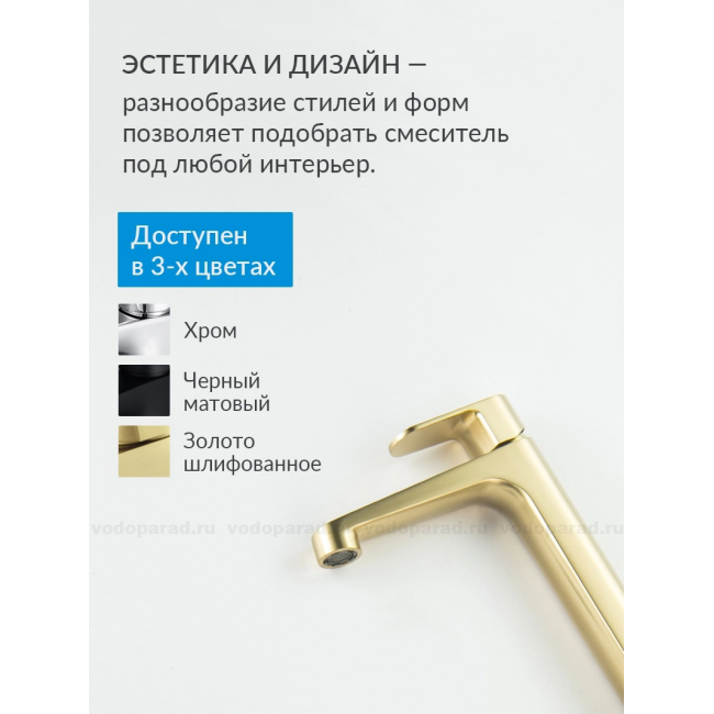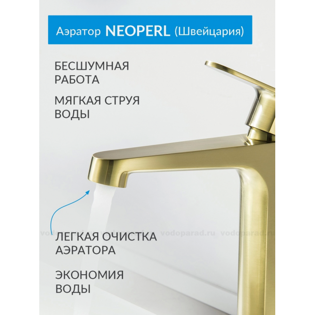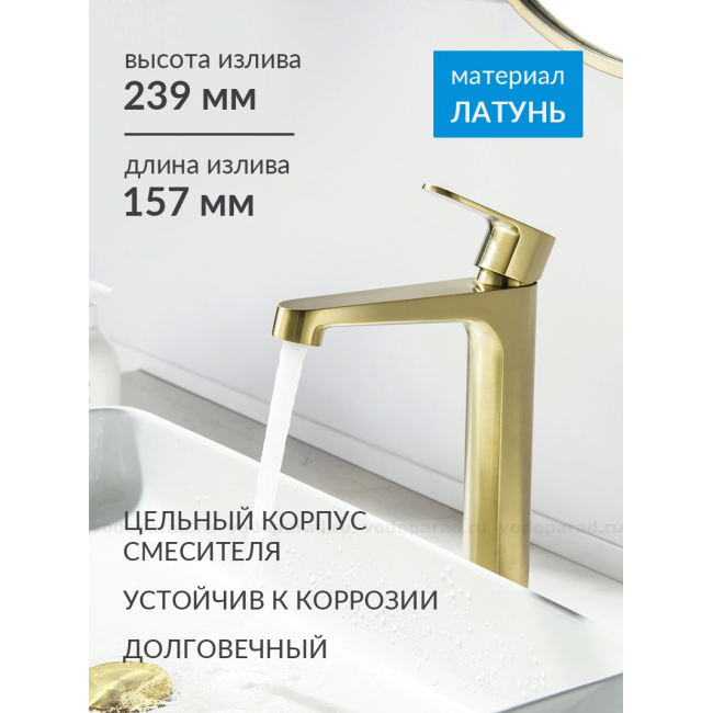 AQ1204BG ОБЕРОН смеситель для раковины высокий 240, без донного клапана, шлиф. золото купить с доставкой. 100% Оригинал. Гарантия!