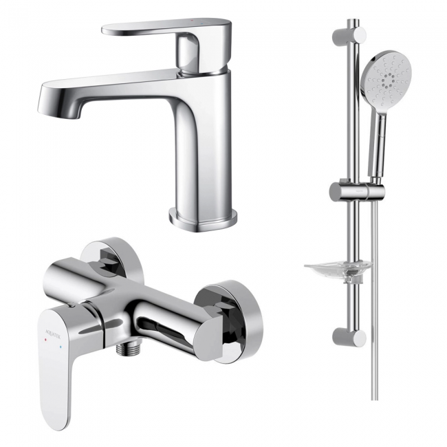 AQ1210CR ОБЕРОН смеситель для раковины 98, без донного клапана + AQ1260CR ОБЕРОН смеситель для душа + AQ2014CR ОБЕРОН душевой гарнитур 3jet 60 см купить с доставкой. 100% Оригинал. Гарантия!