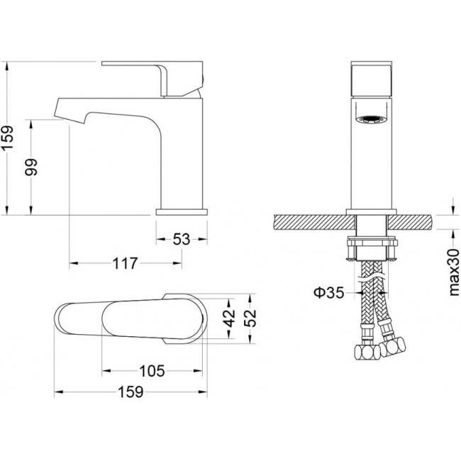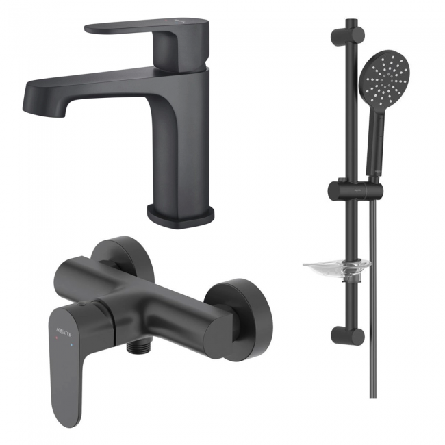 AQ1231MB ОБЕРОН Set 3 в 1: смеситель для раковины + смес. для душа + душевой гарнитур 3jet 60 см, матовый черный купить с доставкой. 100% Оригинал. Гарантия!