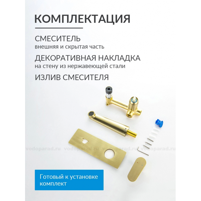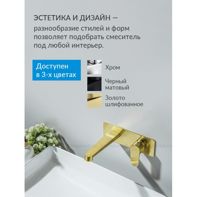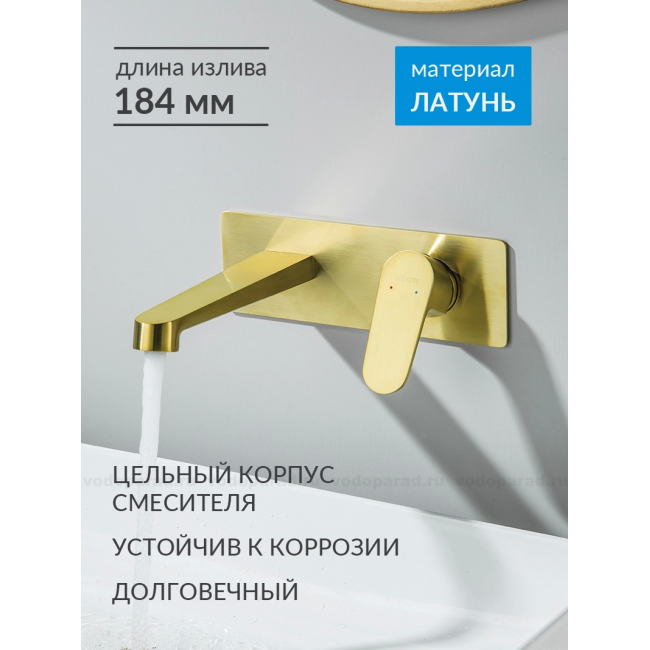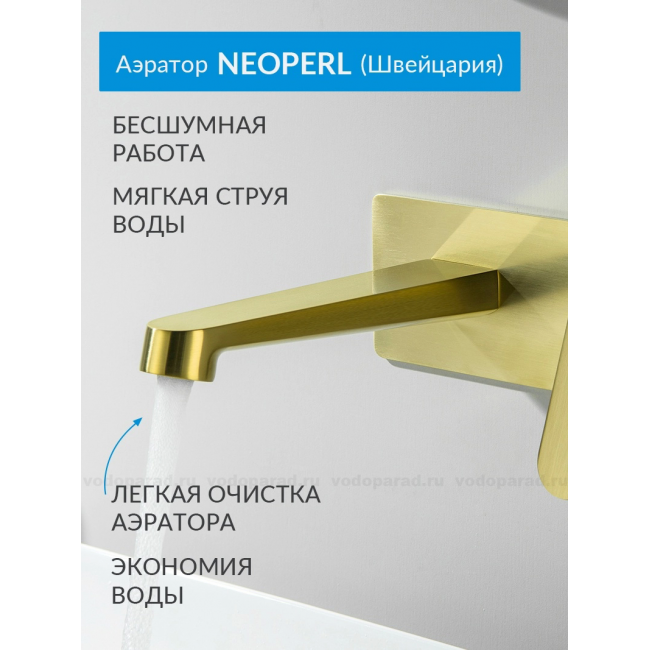 AQ1213BG ОБЕРОН смеситель для раковины настенный (внешняя и скрытая часть), шлиф. золото купить с доставкой. 100% Оригинал. Гарантия!