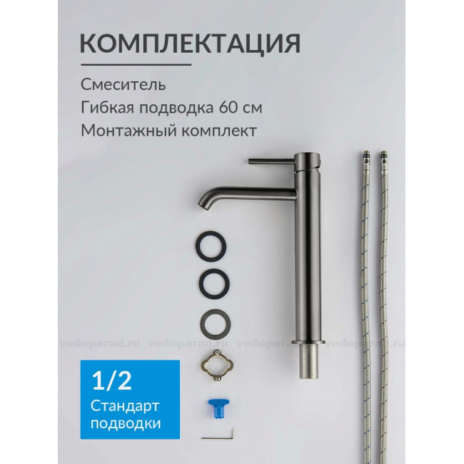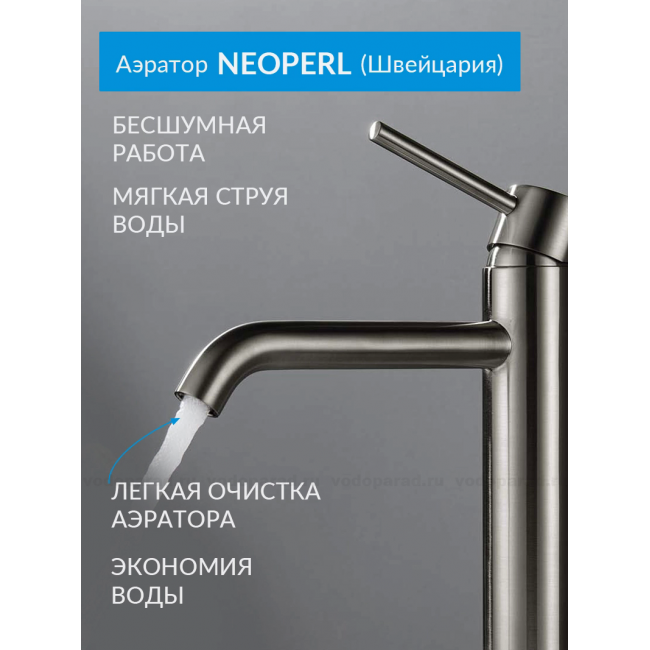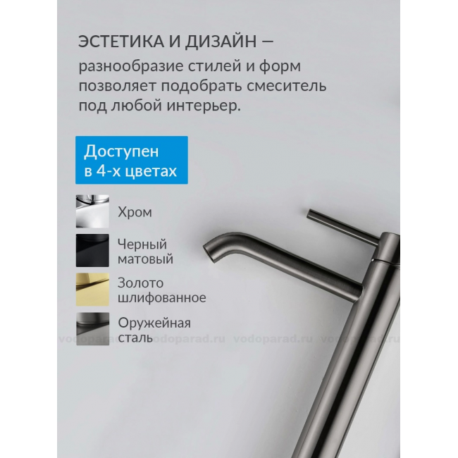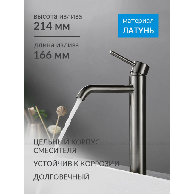 AQ1304BGM ЕВРОПА смеситель для раковины высокий 215, без донного клапана, оружейная сталь купить с доставкой. 100% Оригинал. Гарантия!