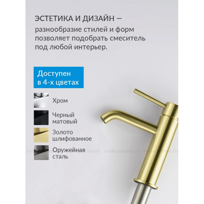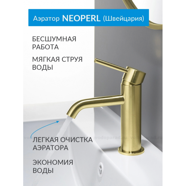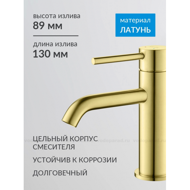 AQ1310BG ЕВРОПА смеситель для раковины 89, без донного клапана, шлиф. золото купить с доставкой. 100% Оригинал. Гарантия!