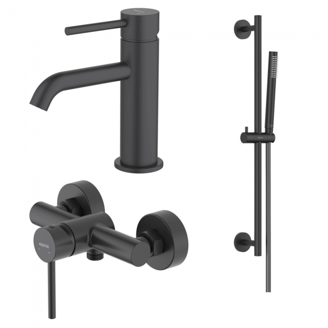 AQ1331MB ЕВРОПА Set 3 в 1: сместель для раковины + смес. для душа + душевой гарнитур 1jet 65 см, матовый черный купить с доставкой. 100% Оригинал. Гарантия!