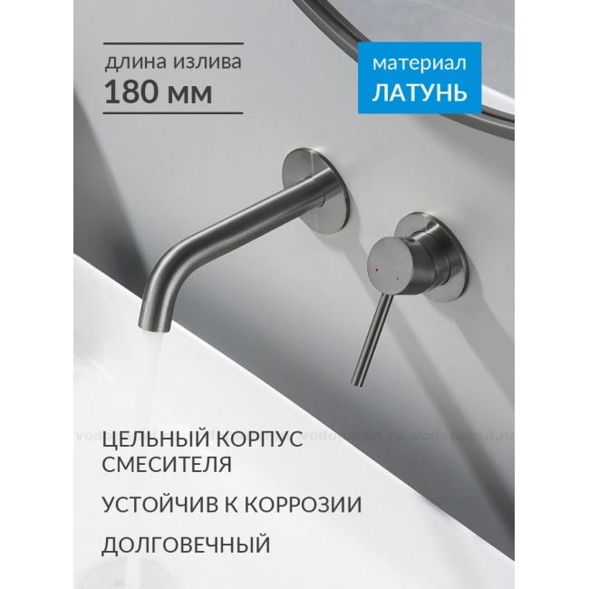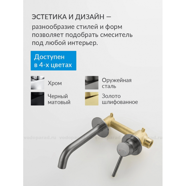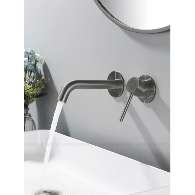 AQ1313BGM ЕВРОПА смеситель для раковины настенный 2 отв. (внешняя и скрытая часть), оружейная сталь купить с доставкой. 100% Оригинал. Гарантия!