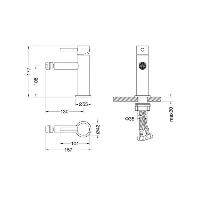 | Комплектация | 1. Смеситель 2. Гибкая подводка 60см 3. Монтажный комплект |