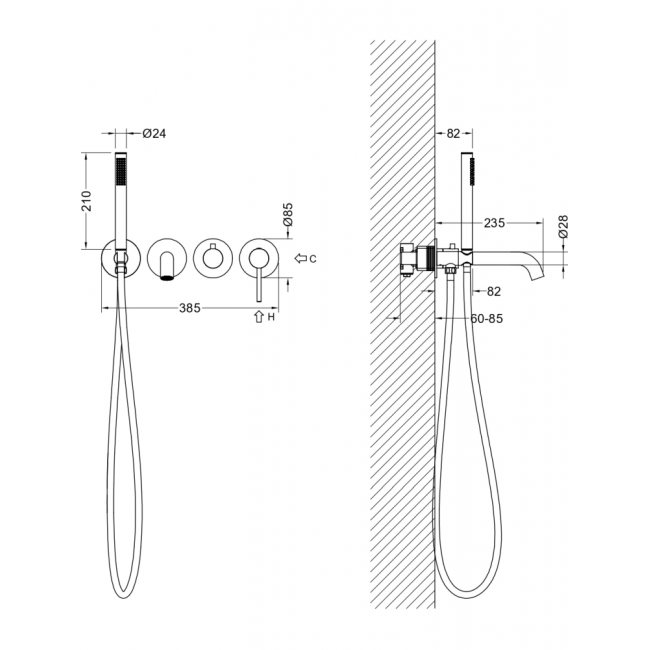 AQ1344MB ЕВРОПА смеситель для ванны встроенный (внешняя и скрытая часть), матовый черный купить с доставкой. 100% Оригинал. Гарантия!