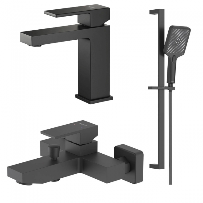 AQ1610MB ЛИБРА смеситель для раковины 114, без донного клапана, матовый черный + AQ1640MB ЛИБРА смеситель для ванны, матовый черный + AQ2019MB ЛИБРА душевой гарнитур 3jet 68 см, матовый черный купить с доставкой. 100% Оригинал. Гарантия!