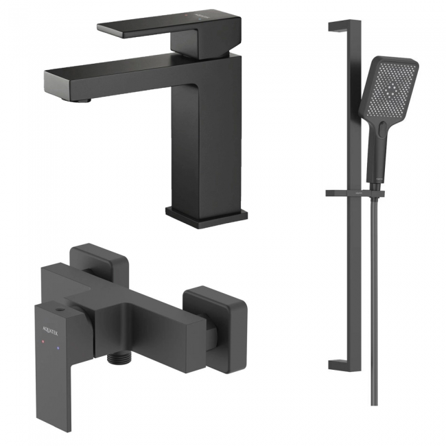 AQ1631MB ЛИБРА Комплект 3 в 1: Смеситель для раковины + смес. для душа + душевой гарнитур 3jet 68 см, матовый черный купить с доставкой. 100% Оригинал. Гарантия!
