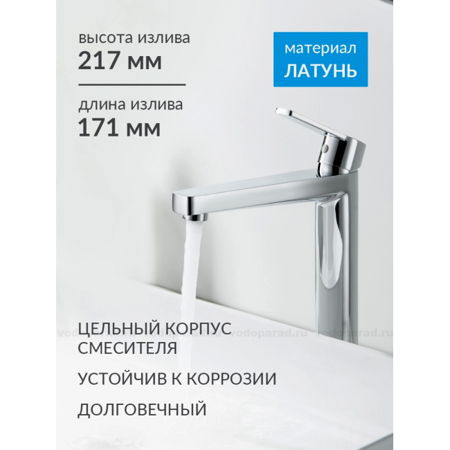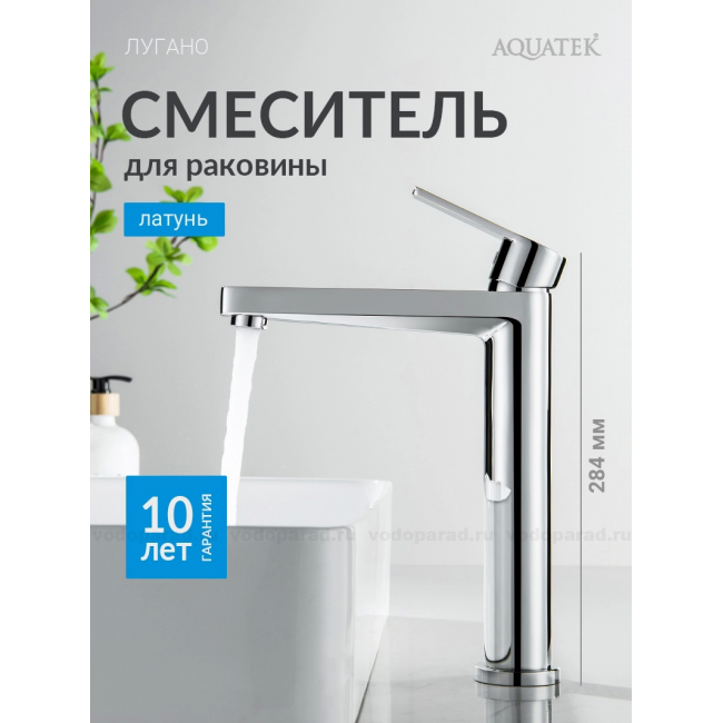AQ1704CR ЛУГАНО смеситель для раковины высокий 217, без донного клапана, хром купить с доставкой. 100% Оригинал. Гарантия!