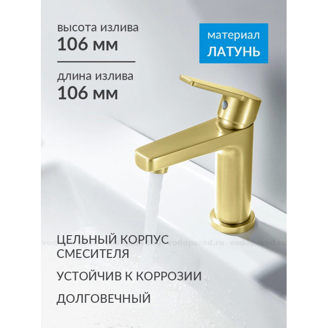 AQ1710BG ЛУГАНО смеситель для раковины 106 без донного клапана, шлиф. золото купить с доставкой. 100% Оригинал. Гарантия!