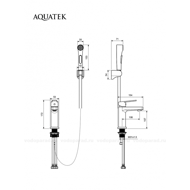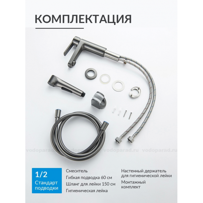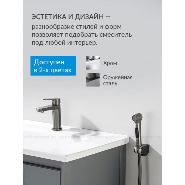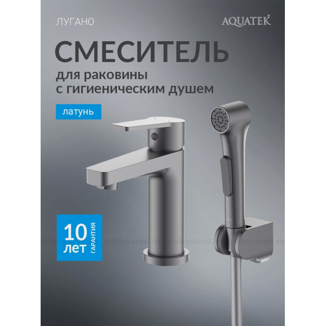 AQ1712BGM ЛУГАНО смеситель для раковины 106 с гигиеническим ручным душем, оружейная сталь купить с доставкой. 100% Оригинал. Гарантия!