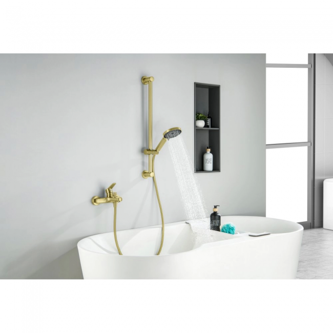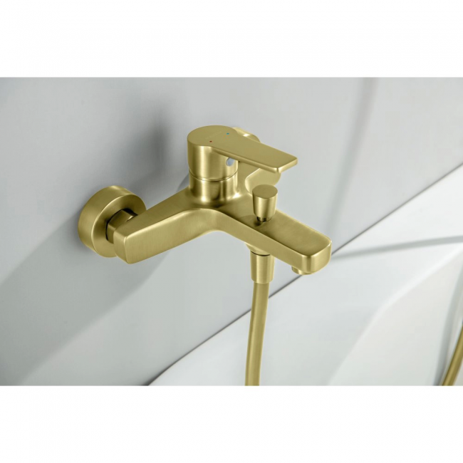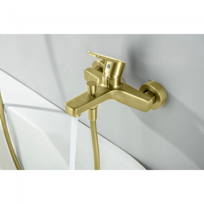 AQ1748BG ЛУГАНО смеситель для ванны с душевым гарнитуром, шлиф. золото купить с доставкой. 100% Оригинал. Гарантия!