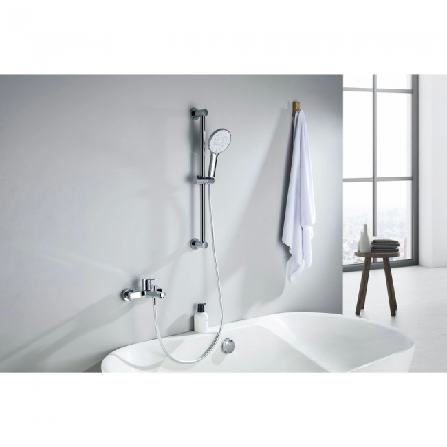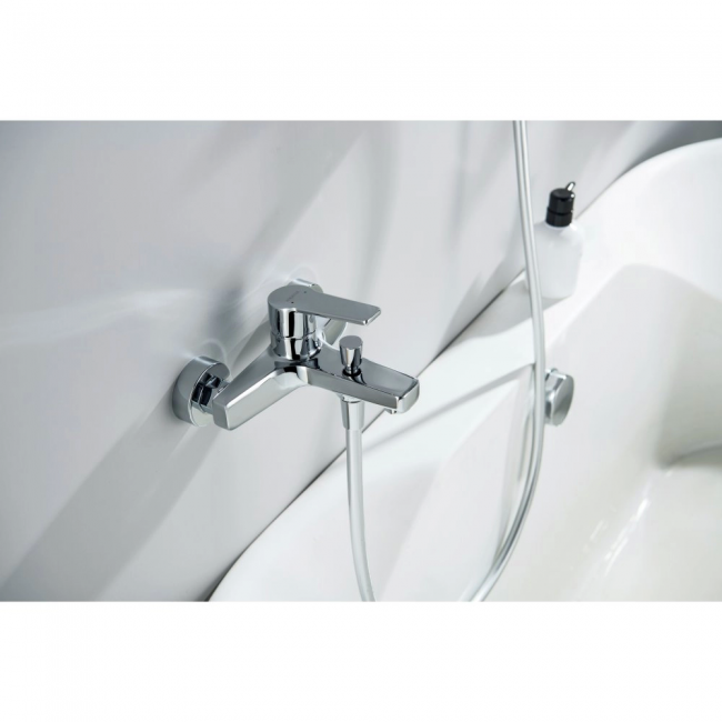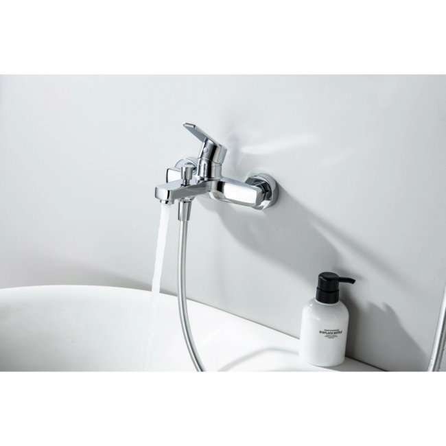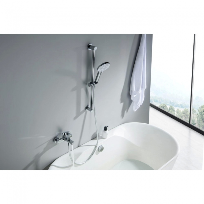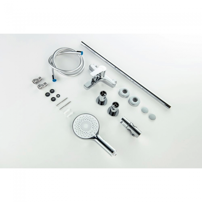 | Комплектация | 1. Смеситель 2. Душевой гарнитур (лейка, шланг, душевая штанга, держатель душевой лейки) 3. S-образные эксцентрики 4. Декоративные отражатели |