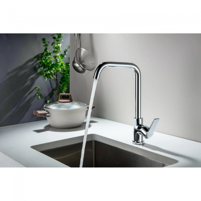 AQ1781CR ЛУГАНО смеситель для кухни (квадратный излив), хром купить с доставкой. 100% Оригинал. Гарантия!