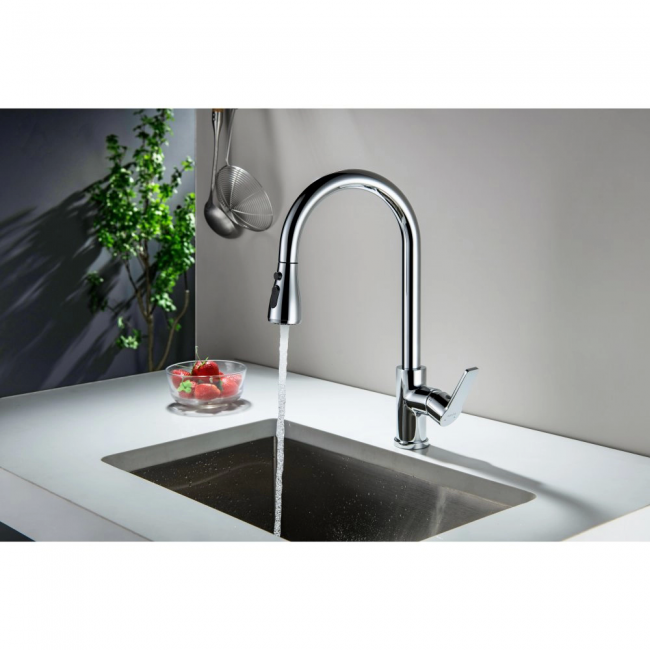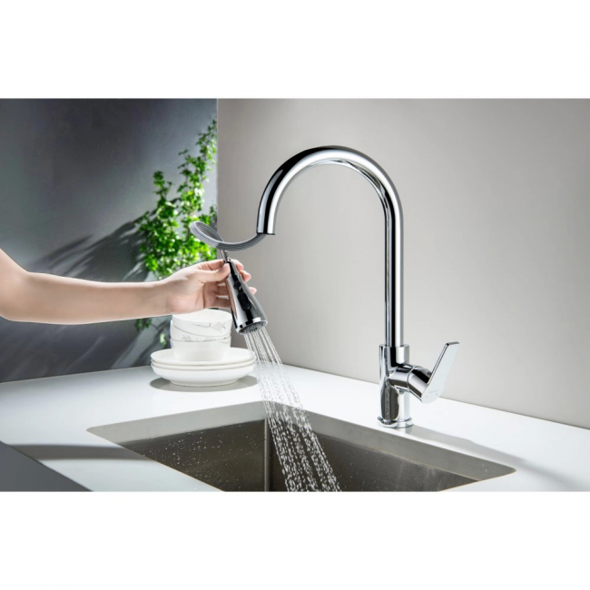 AQ1784CR ЛУГАНО смеситель для кухни с вытяжным изливом 2jet купить с доставкой. 100% Оригинал. Гарантия!