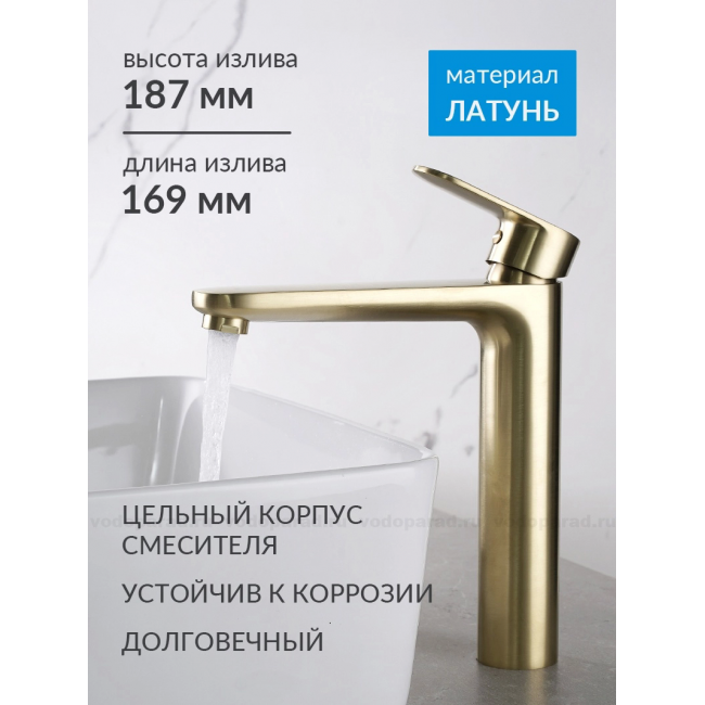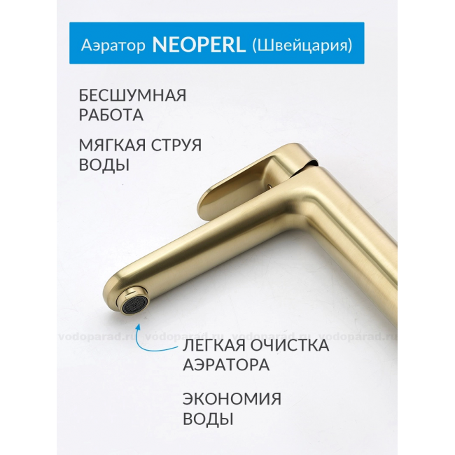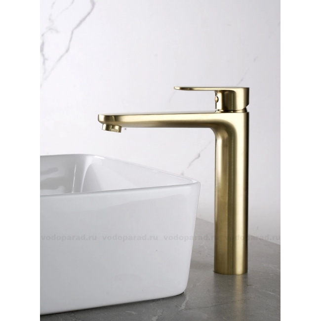 AQ1804BG НИКА смеситель для раковины высокий 190 без донного клапана, шлиф.золото купить с доставкой. 100% Оригинал. Гарантия!