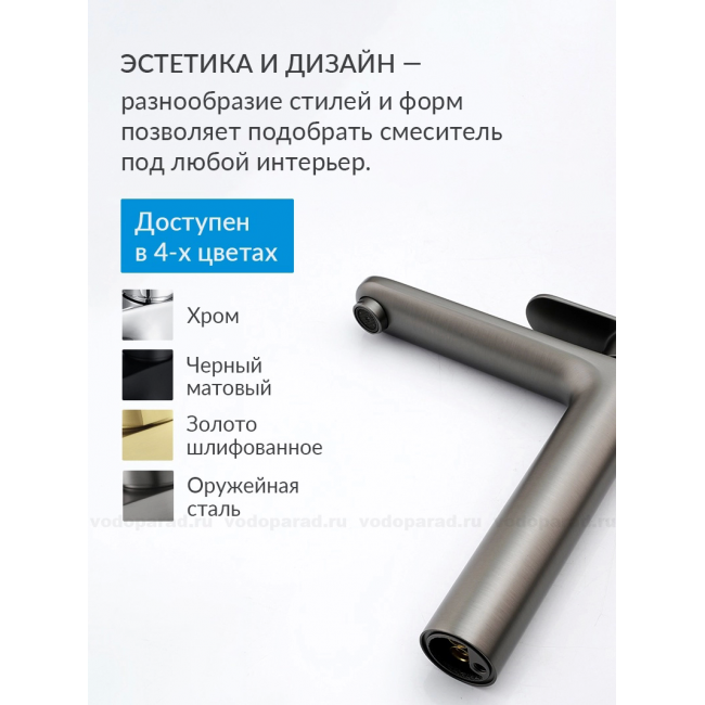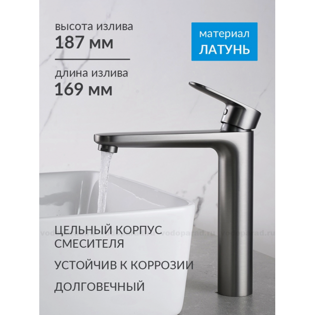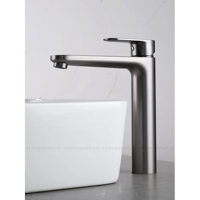 AQ1804BGM НИКА смеситель для раковины высокий 190 без донного клапана, оружейная сталь купить с доставкой. 100% Оригинал. Гарантия!