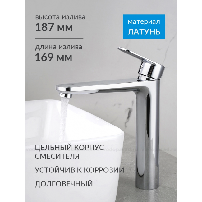 AQ1804CR НИКА смеситель для раковины высокий 190 без донного клапана купить с доставкой. 100% Оригинал. Гарантия!