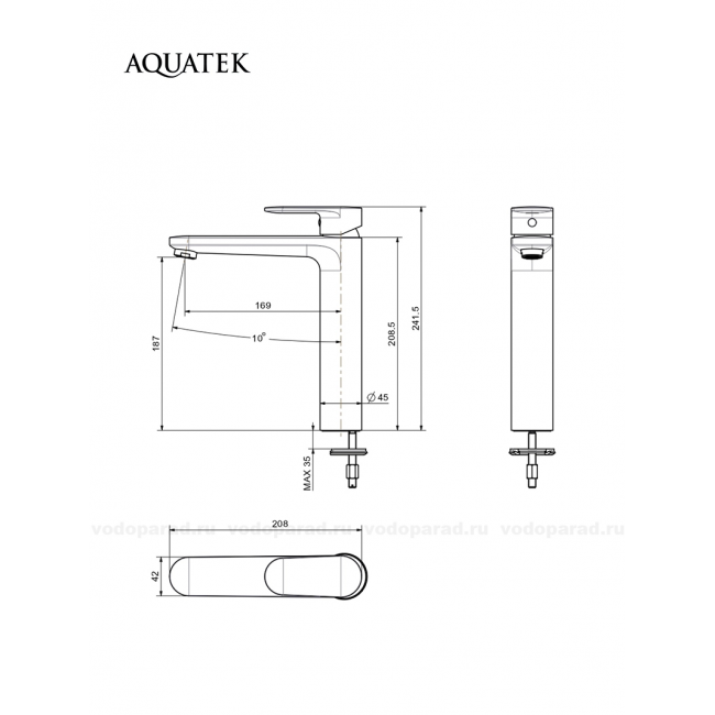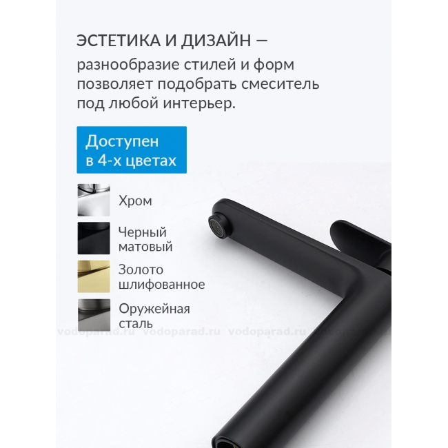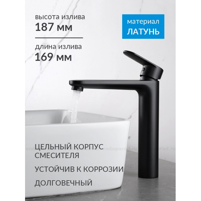 AQ1804MB НИКА смеситель для раковины высокий 190 без донного клапана, матовый черный купить с доставкой. 100% Оригинал. Гарантия!
