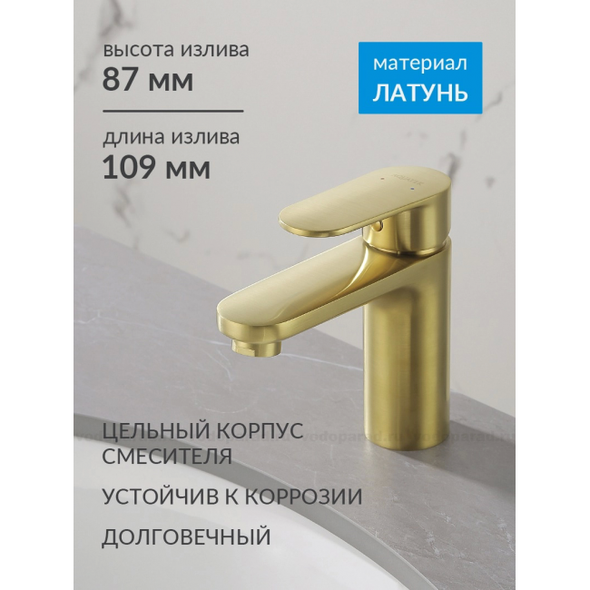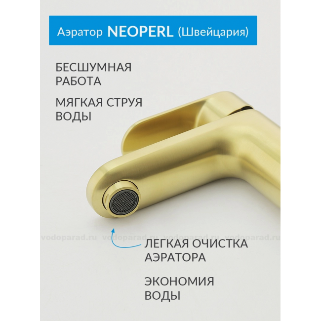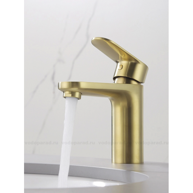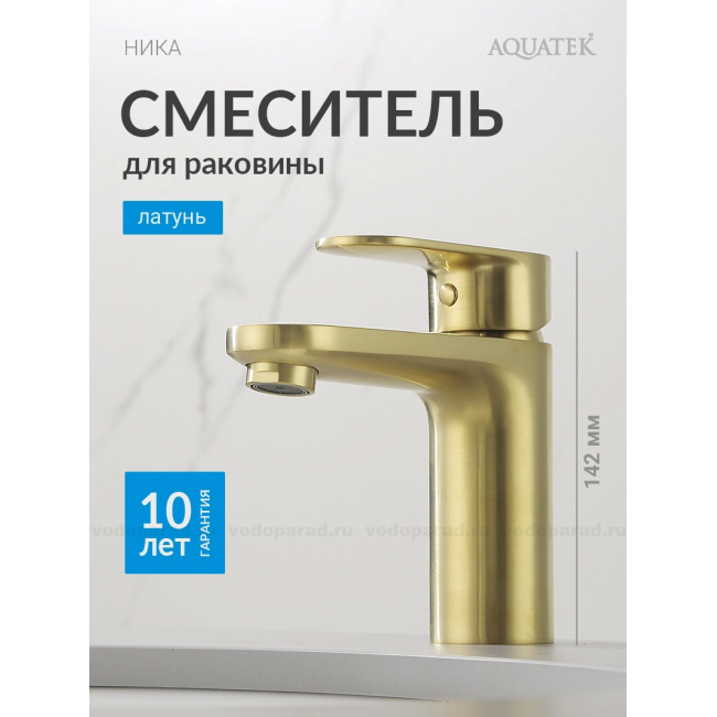 AQ1810BG НИКА смеситель для раковины 90 без донного клапана, шлиф.золото купить с доставкой. 100% Оригинал. Гарантия!
