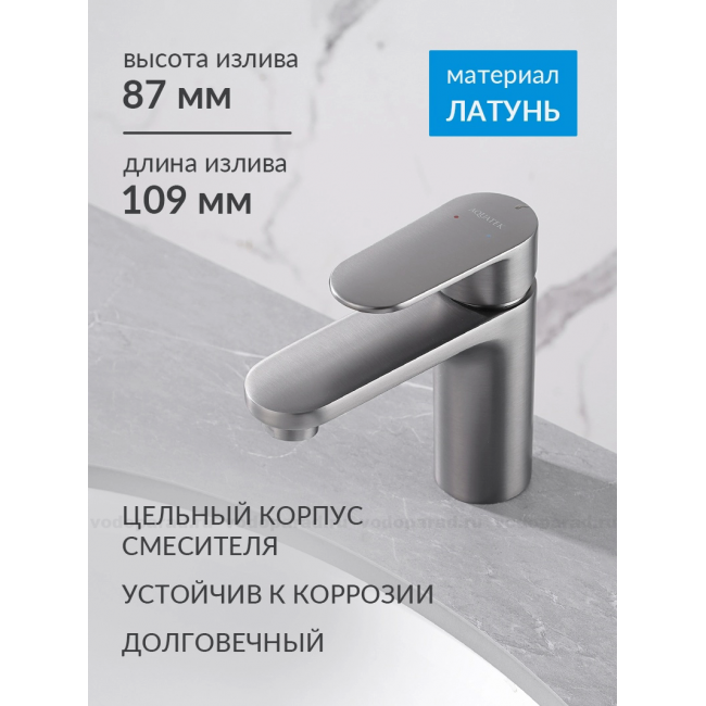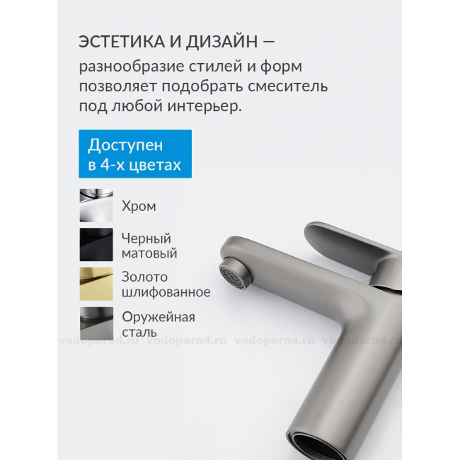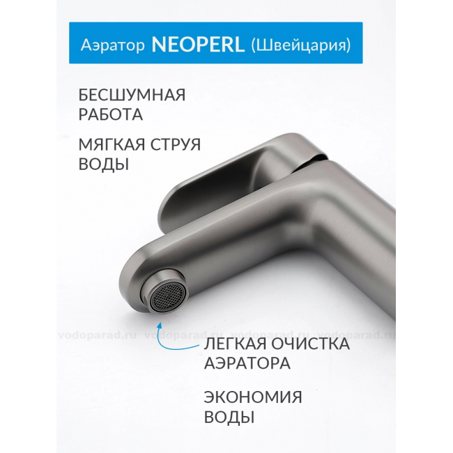 AQ1810BGM НИКА смеситель для раковины 90 без донного клапана, оружейная сталь купить с доставкой. 100% Оригинал. Гарантия!