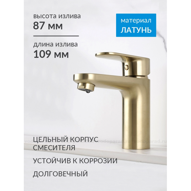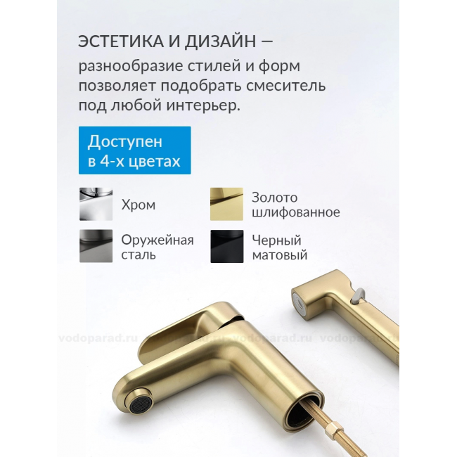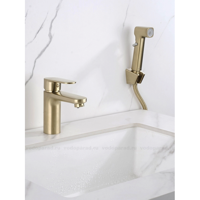 AQ1812BG НИКА смеситель для раковины 90 без донного клапана с гигиеническим ручным душем, шлиф.золото купить с доставкой. 100% Оригинал. Гарантия!