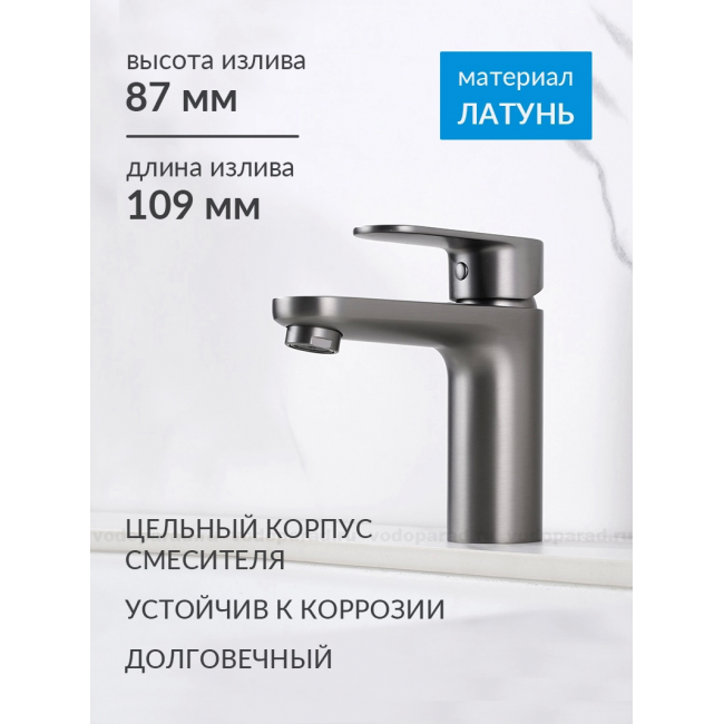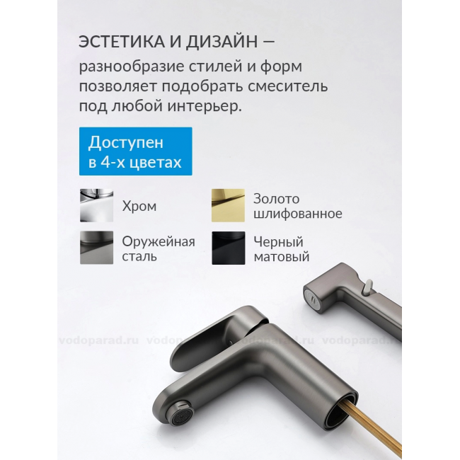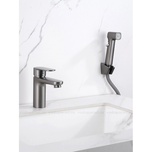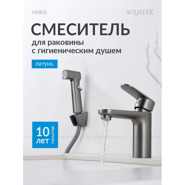 AQ1812BGM НИКА смеситель для раковины 90 без донного клапана с гигиеническим ручным душем, оружейная сталь купить с доставкой. 100% Оригинал. Гарантия!