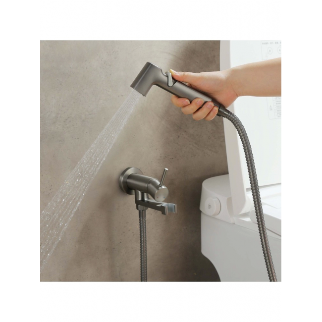 AQ1819BGM НИКА комплект для гигиенического душа встроенный (смеситель + гигиеническая лейка + шланг), оружейная сталь купить с доставкой. 100% Оригинал. Гарантия!