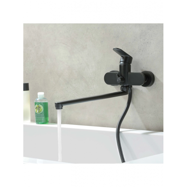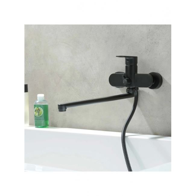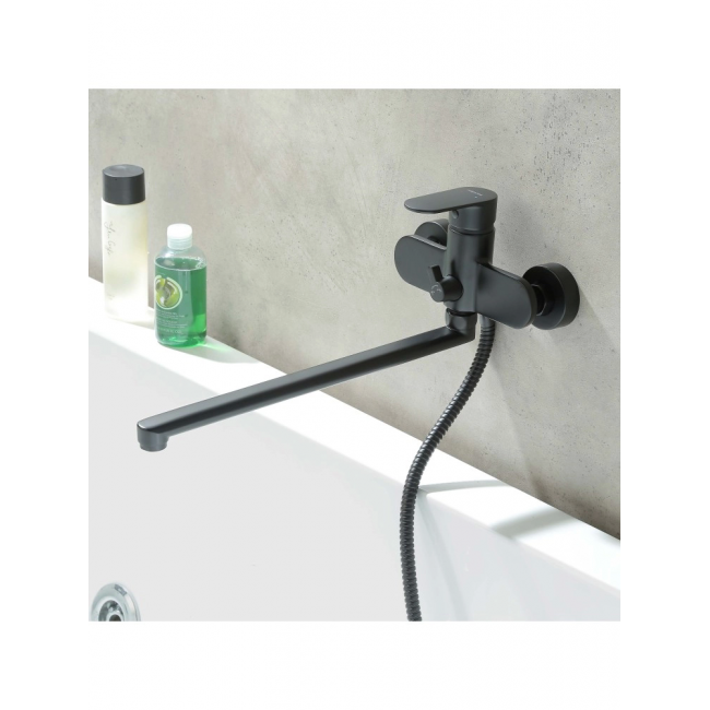 AQ1842MB НИКА смеситель для ванны с длинным изливом, матовый черный купить с доставкой. 100% Оригинал. Гарантия!