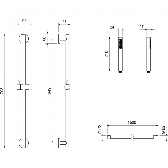 | Комплектация | 1. Душевая штанга 2. Держатель душевой лейки 3. Душевая лейка 4. Душевой шланг из ПВХ 5. Монтажный комплект |