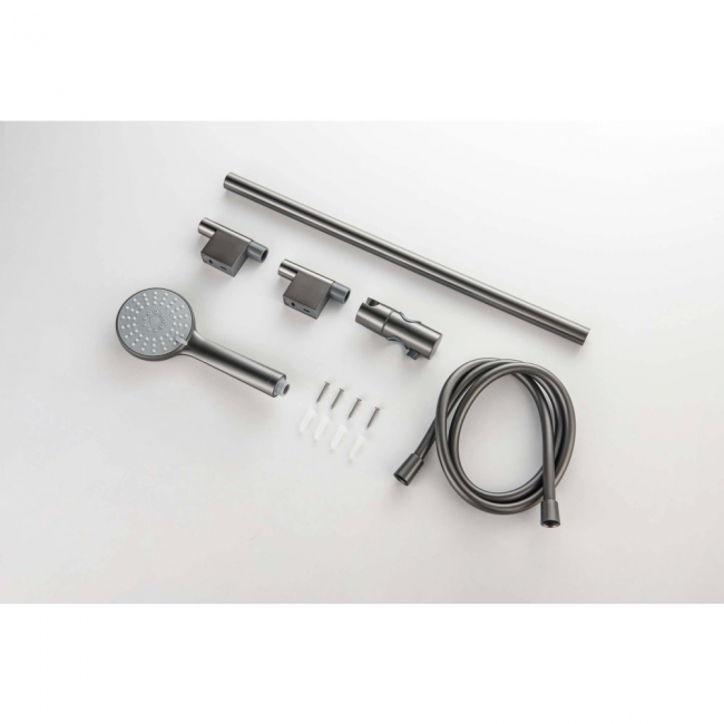 | Комплектация | 1. Душевая штанга 2. Держатель душевой лейки 3. Душевая лейка 4. Душевой шланг 5. Монтажный комплект |