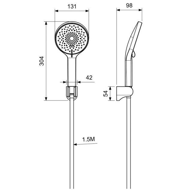 | Комплектация | 1. Держатель для душа 2. Душевой шланг из ПВХ 150 см 3. Душевая лейка |