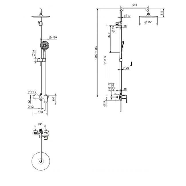 | Комплектация | 1. Тропический душ 2. Душевая лейка 3. Рейлинг 4. Душевой шланг из нержавеющей стали 5. Смеситель 6. S-образные эксцентрики 7. Декоративные отражатели 8. Монтажный комплект |