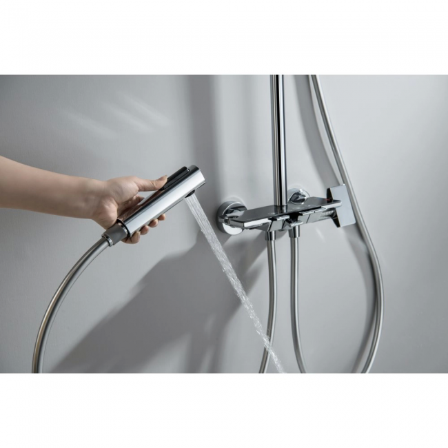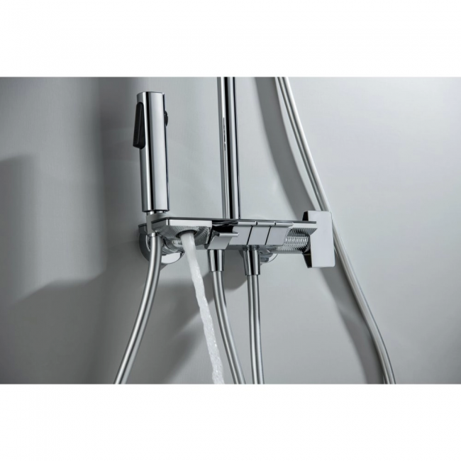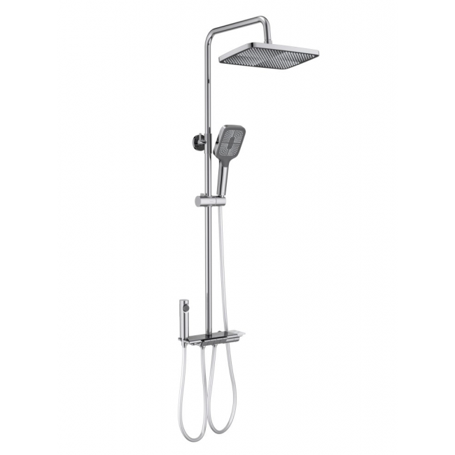| Комплектация | 1. Тропический душ 2. Душевая лейка 3. Рейлинг 4. Душевой шланг из ПВХ 5. Смеситель 6. Излив 7. Гигиеническая лейка 8. Шланг гигиенической лейки из ПВХ 9. S-образные эксцентрики 10. Декоративные отражатели 11. Монтажный комплект |