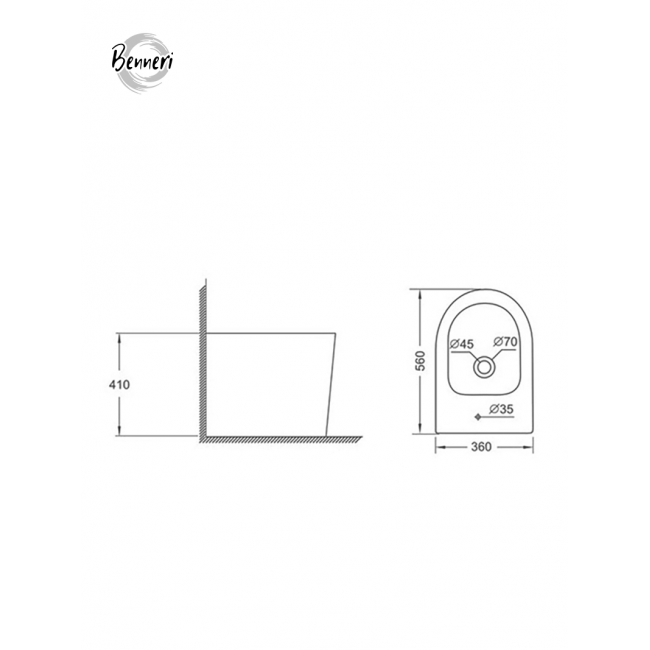 - Биде BENNERI изготовлено из 100% фарфора с использованием технологии высокотемпературного обжига. Гладкая глазурованная поверхность санитарной керамики BENNERI устойчива к загрязнениям, сохраняет безупречную белизну и жемчужный блеск на долгое время.