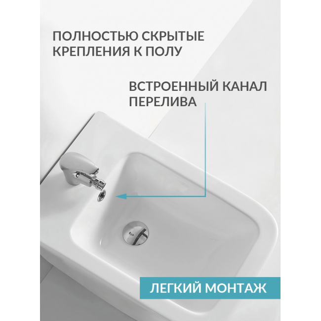 - Донный клапан в комплект не входит и приобретается отдельно. Установка напольного биде не требует дополнительных опорных конструкций в виде инсталляций.