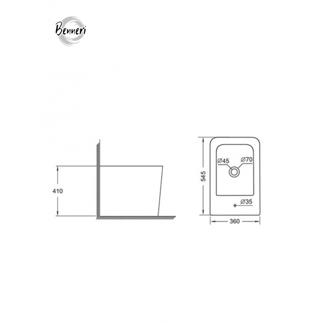 - Биде BENNERI изготовлено из 100% фарфора с использованием технологии высокотемпературного обжига. Гладкая глазурованная поверхность санитарной керамики BENNERI устойчива к загрязнениям, сохраняет безупречную белизну и жемчужный блеск на долгое время.