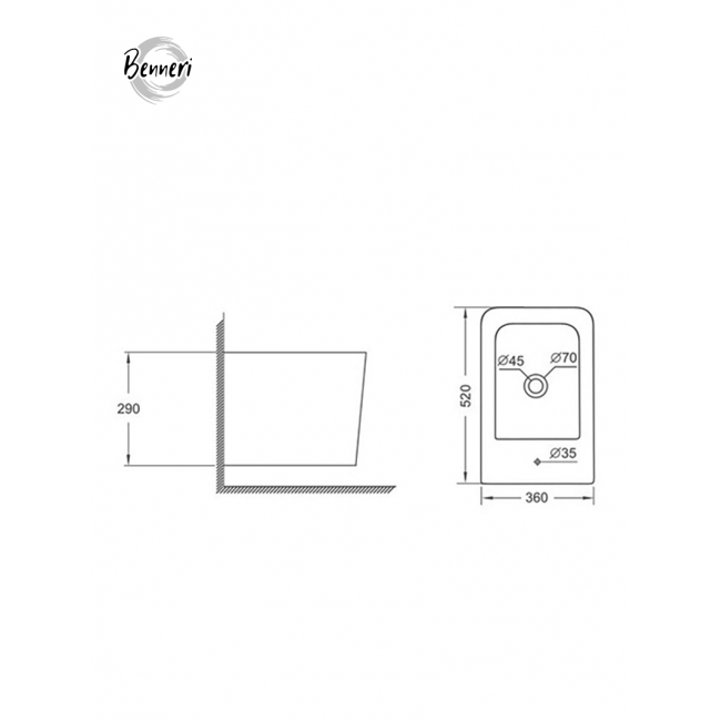- Биде BENNERI изготовлено из 100% фарфора с использованием технологии высокотемпературного обжига. Гладкая глазурованная поверхность санитарной керамики BENNERI устойчива к загрязнениям, сохраняет безупречную белизну и жемчужный блеск на долгое время.