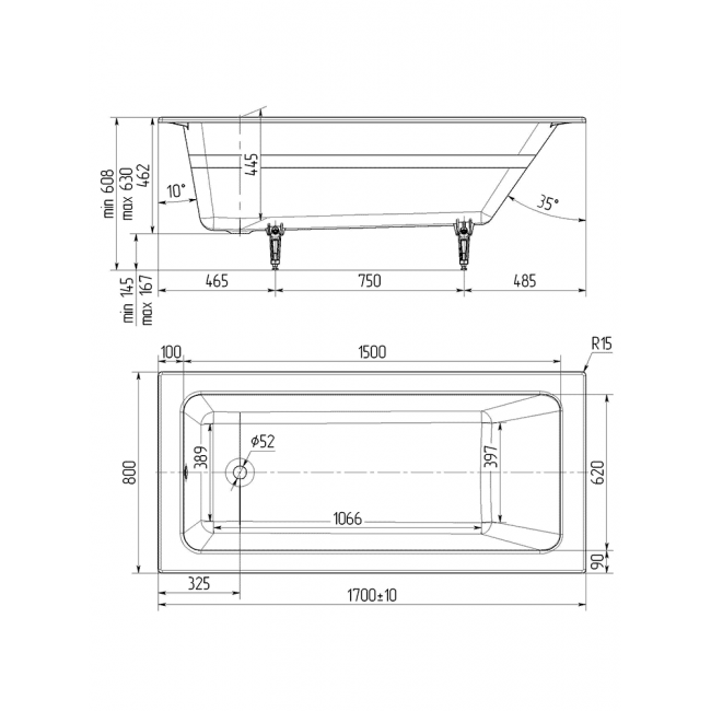 Чугунная ванна Wotte Line 170x80 купить с доставкой. 100% Оригинал. Гарантия!