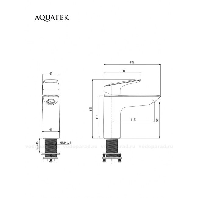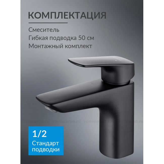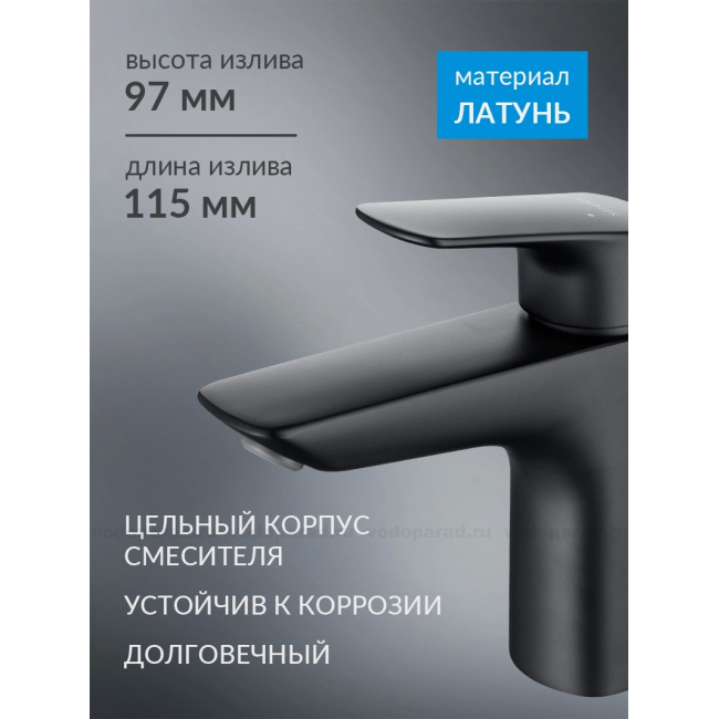 Cмеситель для раковины 97 без донного клапана AQUATEK, черный матовый AQ1010MB ВЕГА купить с доставкой. 100% Оригинал. Гарантия!