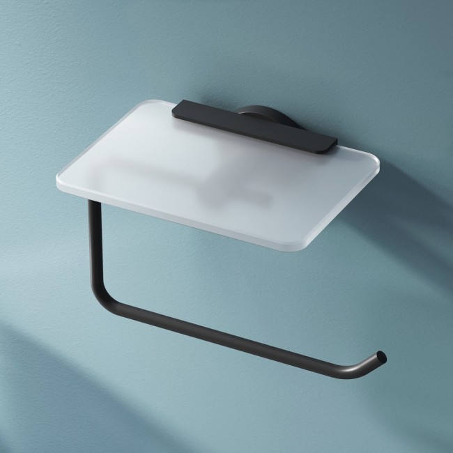 Самая провокационная коллекция сантехники – X-Joy не была полностью наполненной без невероятных аксессуаров для ванной комнаты. Дизайн аксессуаров X-Joy принадлежит авторству собственной дизайн-студии бренда AM.PM из Германии. В основе дизайна аксессуаров – контраст между строгими квадратными и плавными округлыми формами. Это небанальное сочетание форм делает облик продуктов универсальным что позволяет им вписаться в любой интерьер. Держатель для туалетной бумаги X-Joy – незаменимый аксессуар для ванной который поражает своей эргономичностью. Удивительная деталь - держатель оснащен элегантной стеклянной полкой которую вы можете использовать для хранения необходимых мелочей или для того чтобы положить свой смартфон. Продукт выполнен из сплава металлов высочайшего качества с матовым черным покрытием устойчивым к механическим повреждениям. Даже через 10 лет аксессуары X-Joy будут выглядеть как новые.