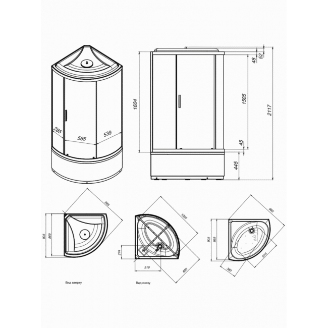 Усиленная конструкция поддона сварной каркас с регулируемыми по высоте ножками позволит скрыть неровность пола. Съемный экран для легкого доступа к пространству под поддоном.