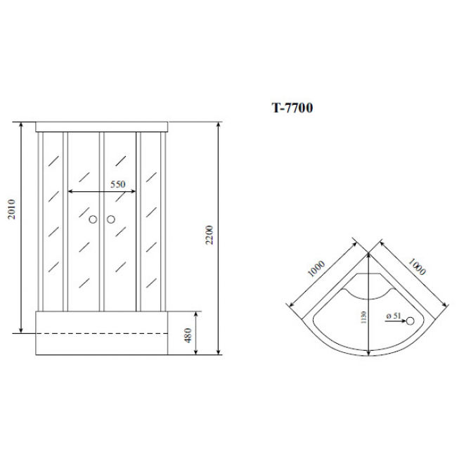акриловый поддон (не ABS) h-48 см с усиленным каркасом,