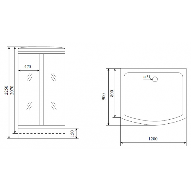 акриловый поддон (не ABS) h-15 см с усиленным каркасом,
