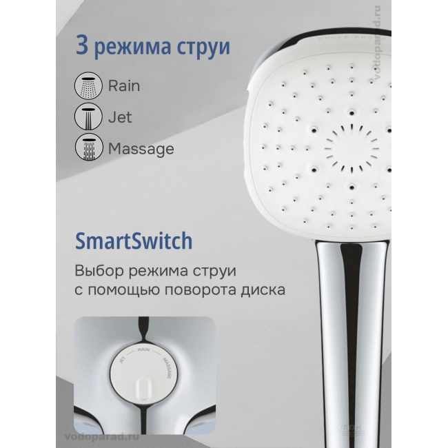 GROHE SmartSwitch - поверните диск, чтобы насладиться предпочтительным режимом струи