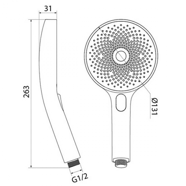 Ручная лейка из ABS-пластика, диаметр 130 мм. Цвет: чёрный матовый, форсунки - белые. Материал: лейка из ABS-пластика, форсунки из силикона. 3 режима, кнопочное переключение режимов.