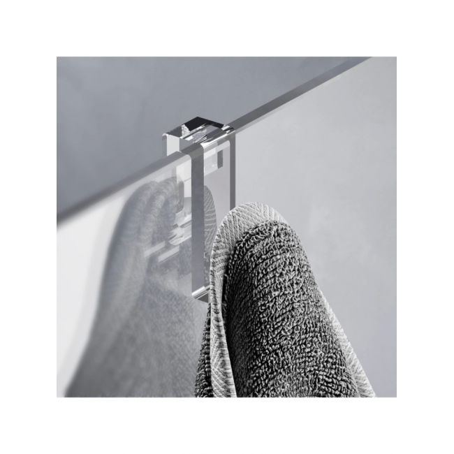 конструкция оснащена крючком для полотенец, который удобно расположен на стекле.