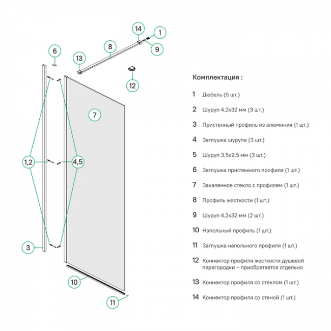- Прозрачное закаленное стекло толщиной 8 мм выдерживает случайные удары, что делает перегородку надежной и безопасной в каждодневном использовании.